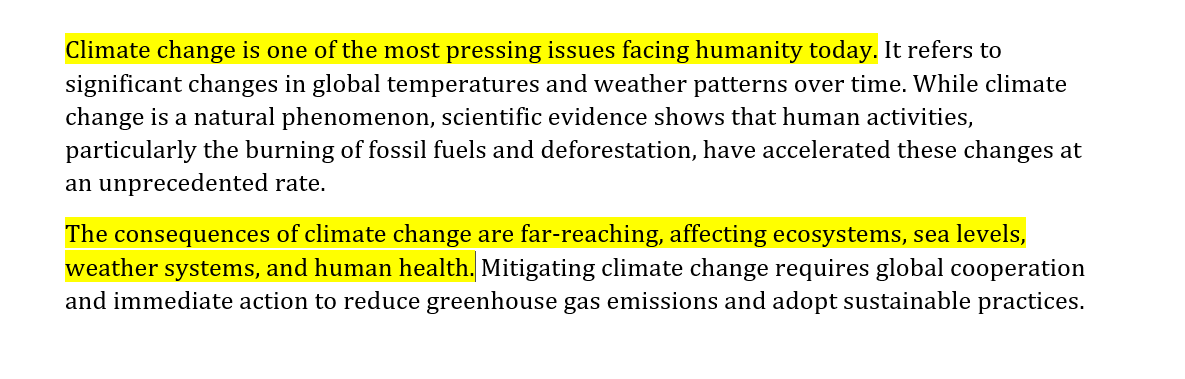 To exemplify this, we’re attaching an image below that shows us highlighting the main points from a text.